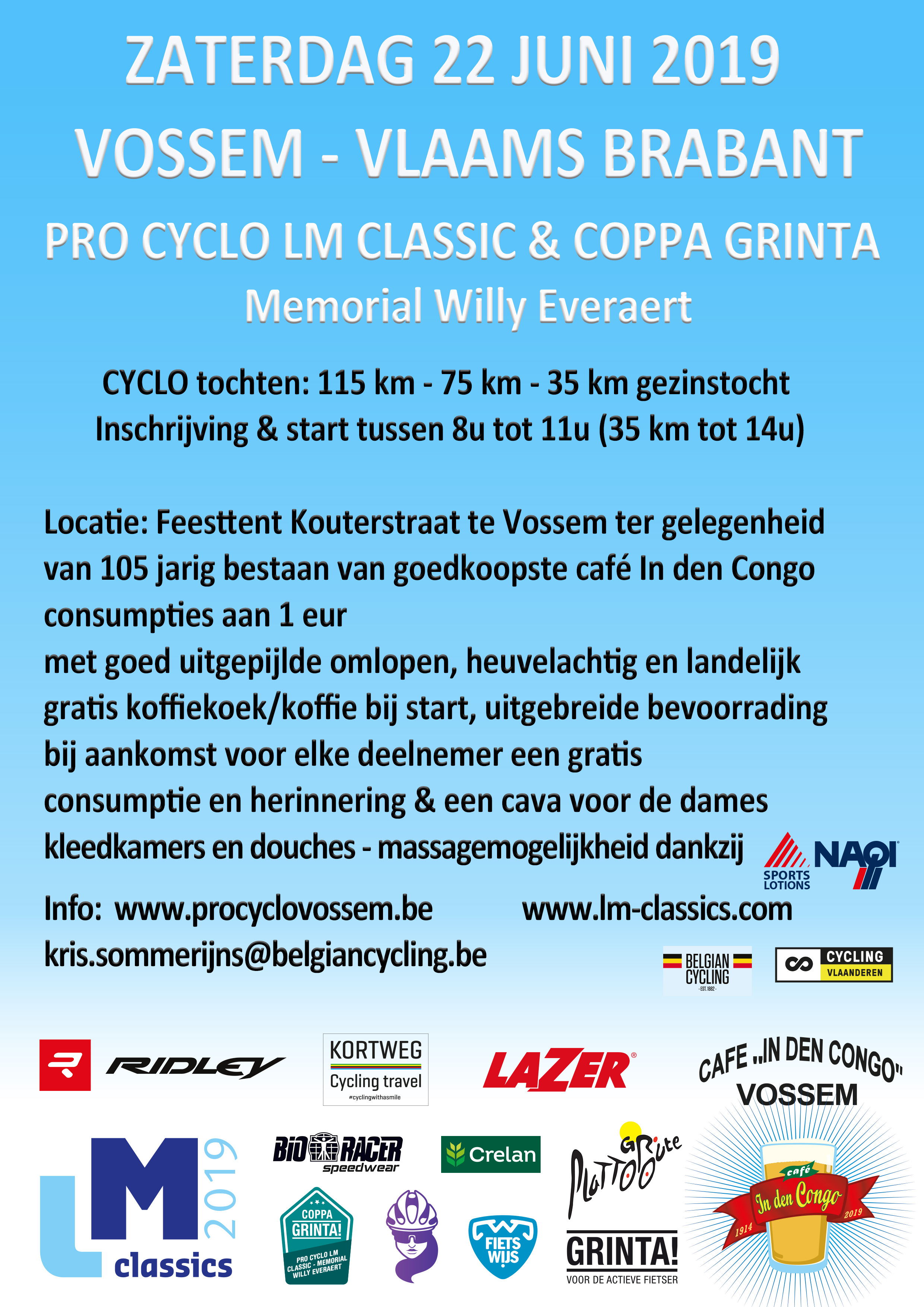 Pro Cyclo Vossem - maatschappelijke zetel te Dorpsstraat 90, 3080 Vossem - Tervuren - E-mail info@procyclovossem.be BTW BE 0478.266.319